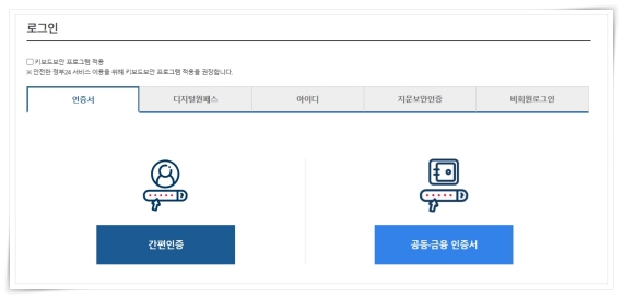 3. 간편 인증 또는 공동 인증서를 통해 로그인해주세요.