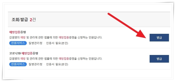 2. 검색 결과에서 우측 "발급"을 클리해 주세요.