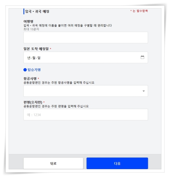 3. 입국 예정 정보 및 도착지 정보를 입력해 주세요.