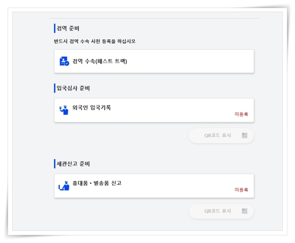 4. 검역 준비에서 "패스트 트랙"을 클릭해 주세요.