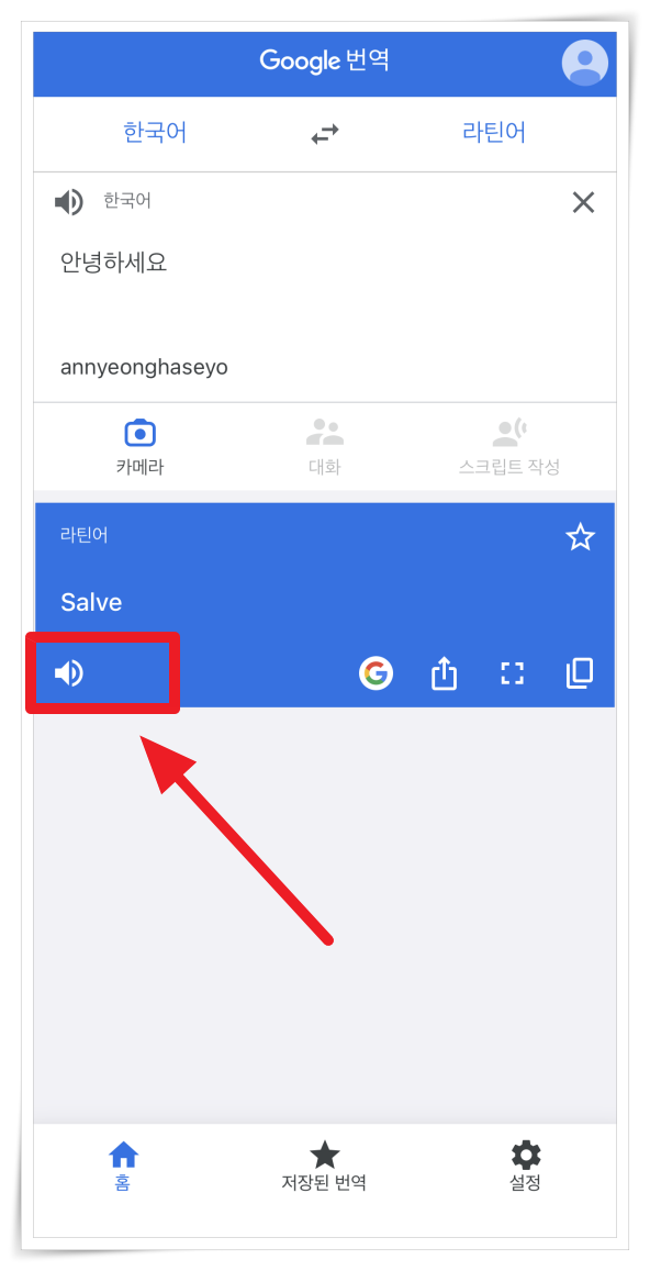 5. 번역 결과 하단 스피커를 클릭하면 발음을 들을 수 있습니다.
