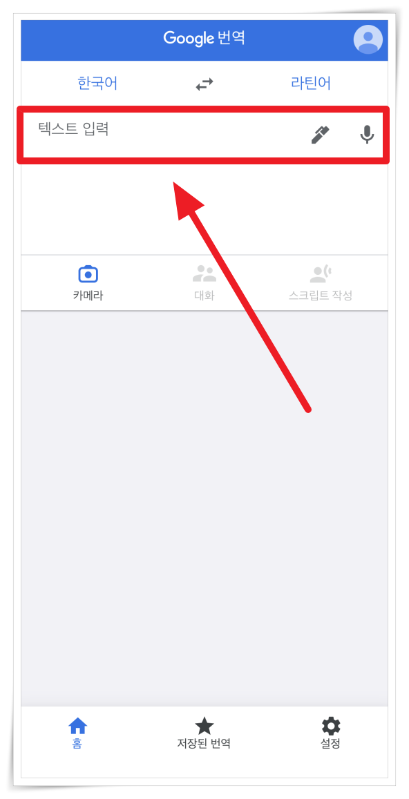 4. 텍스트 입력란에 한국어를 입력해 주세요. 타이핑, 필기, 마이크를 통해 입력할 수 있습니다.
