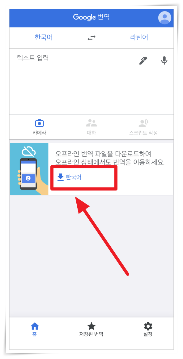 처음 라틴어를 배울 때 번역기를 이용하면 큰 도움이 되는데요. 구글 번역기에는 데이터 없이도 언제 어디서나 번역이 가능한 기능이 있습니다.