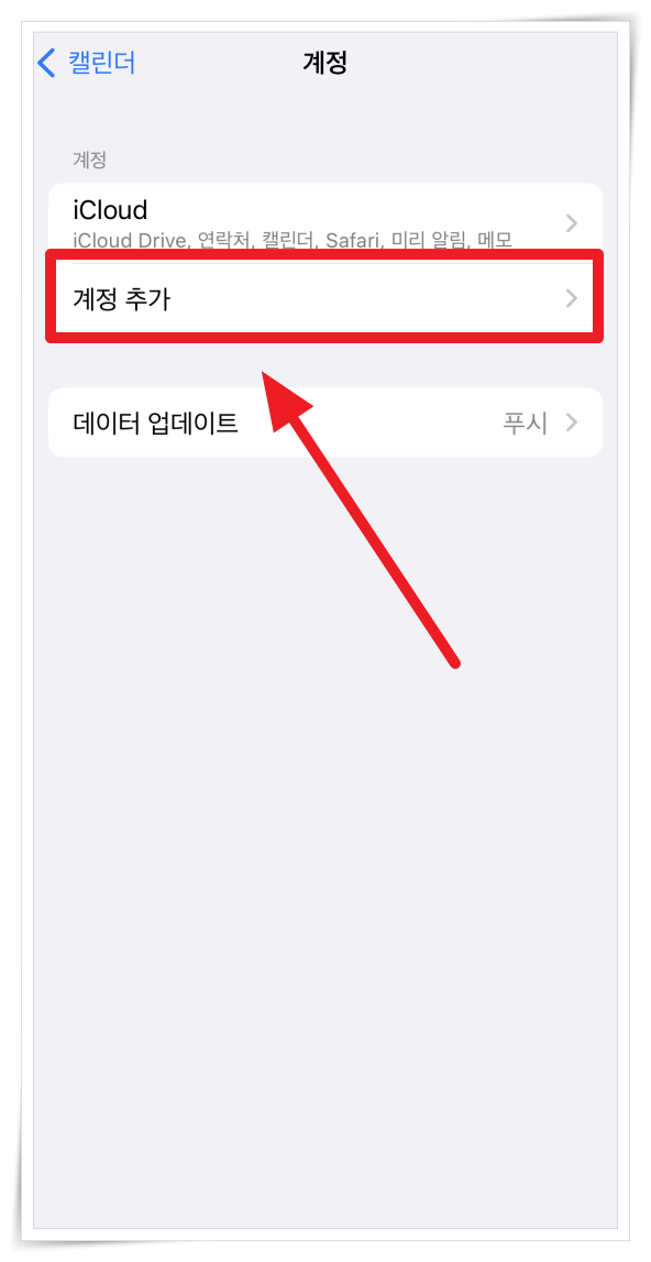 2. 캘린터 메뉴 "계정"에서 "계정 추가"를 클릭해 주세요.