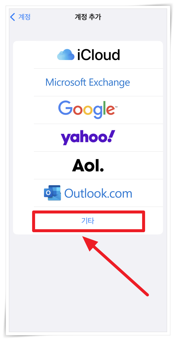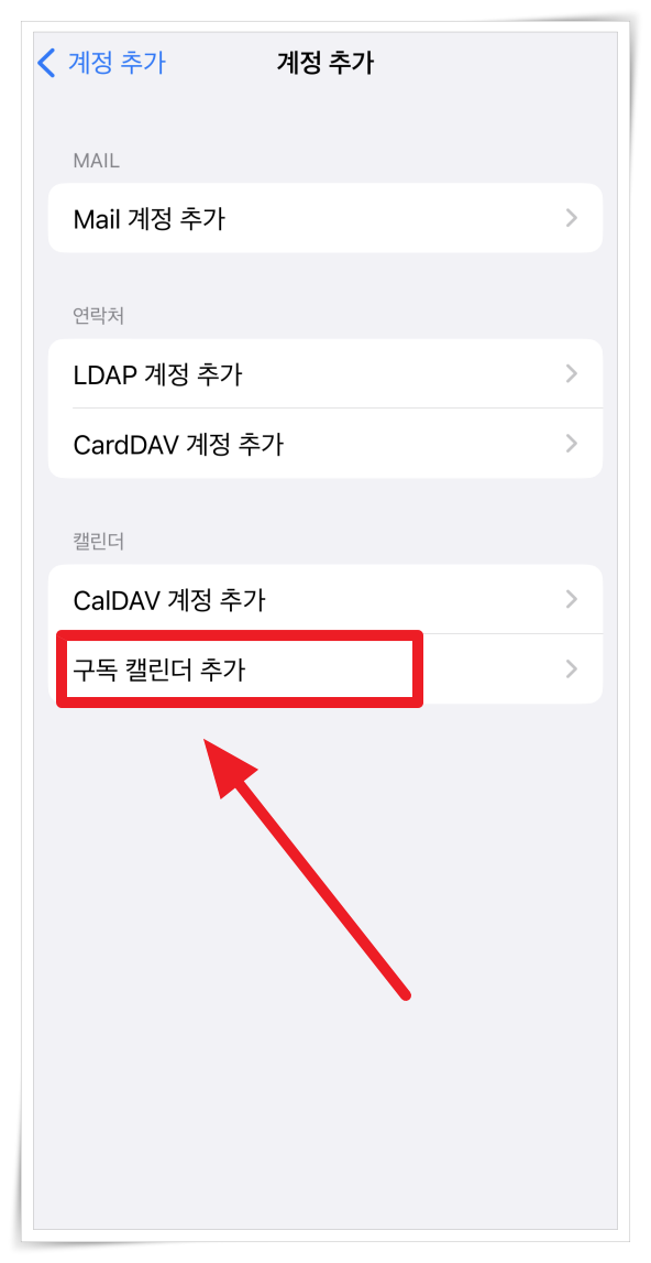 3. 계정 추가에서 "기타"를 선택 후 "구독 캘린더 추가"를 클릭해 주세요.