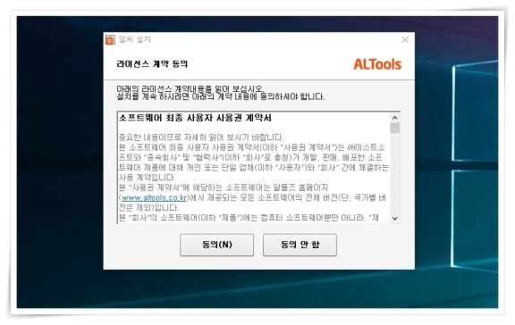 2. 설치가 시작되면 라이선스 계약에 동의해 주세요.