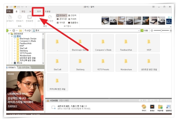 5. 프로그램 시행 후 상단 메뉴에서 "도구"를 클릭해 주세요.