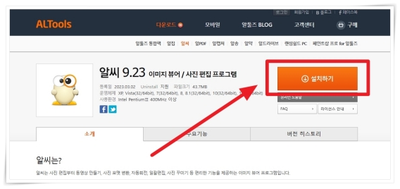 1. 공식 홈페이지에서 "설치하기"를 클릭해 주세요.