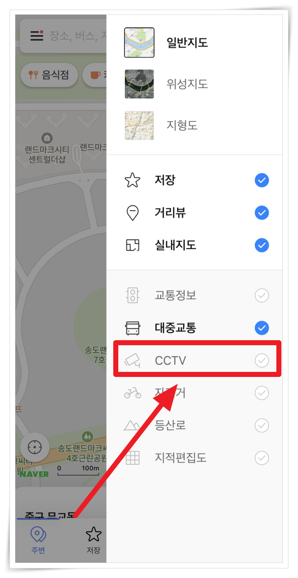 2. 메뉴에서 CCTV를 체크해 주세요.