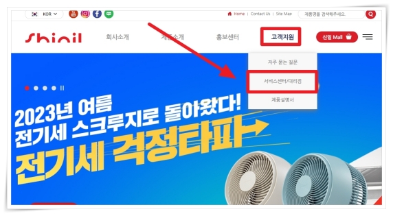 신일선풍기 서비스 센터 조회 방법