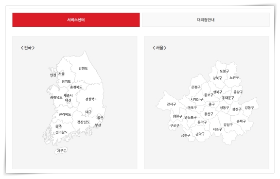 AS가 필요한 경우 전국 서비스 센터에서 쉽게 수리를 받으실 수 있는데요. 가장 가까운 위치의 센터는 조회를 통해 쉽게 알아보실 수 있습니다.