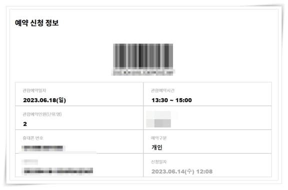 6. 완료되면 입장 가능한 바코드를 부여 받으실 수 있습니다.