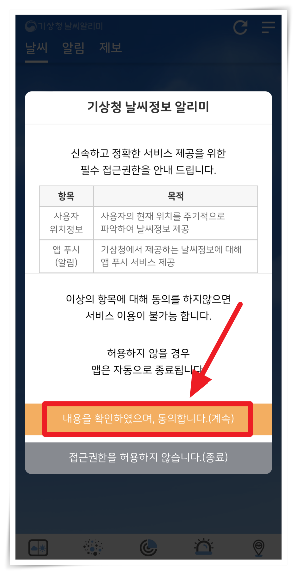 1. 앱 설치 후 필수 접근권한을 허용해 주세요.