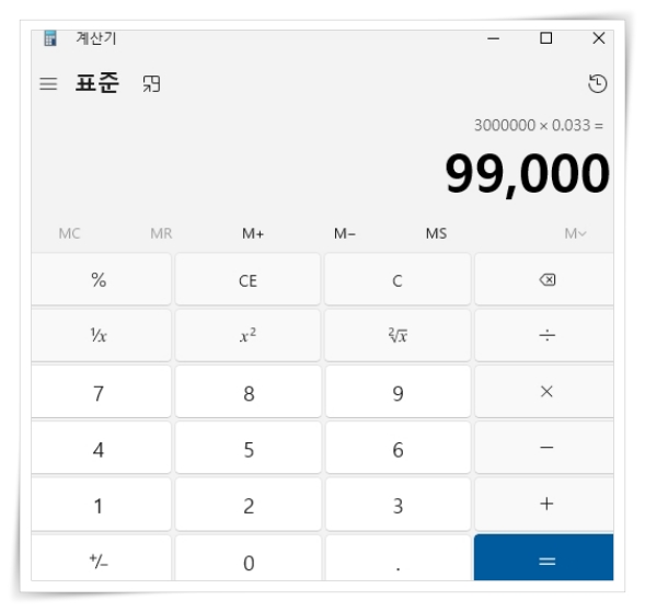 3.3% 계산 방법은 퍼센트 계산기 또는 직접 계산기를 이용하는 방법으로 결과를 확인하실 수 있습니다.