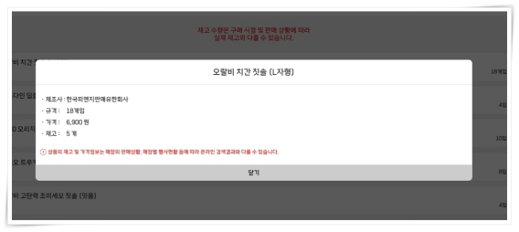 3. 그러면 제조사, 규격, 가격, 재고 등 상품 정보를 확인하실 수 있습니다.