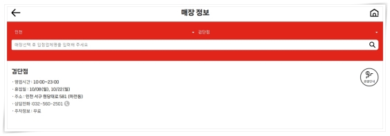 4. 매장정보를 보실려면 "매장 정보"에서 지역 및 매장을 선택해 주세요.