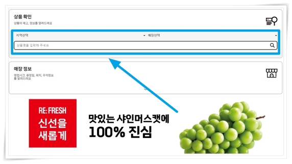 그런데 마트 이용 시 제품 재고 부족으로 구할 수 없는 경우가 있는데요. 이럴 때는 간단한 조회를 통해 전국 매장에 있는 상품의 재고를 미리 확인하고 방문하실 수 있습니다.