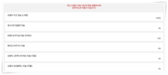 1. 홈페이지 상품 확인에서 지역 및 매장을 선택 후 상품명을 검색해 주세요.