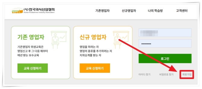 1. 교육 신청을 위해 홈페이지에서 "회원가입"을 클릭해 주세요.