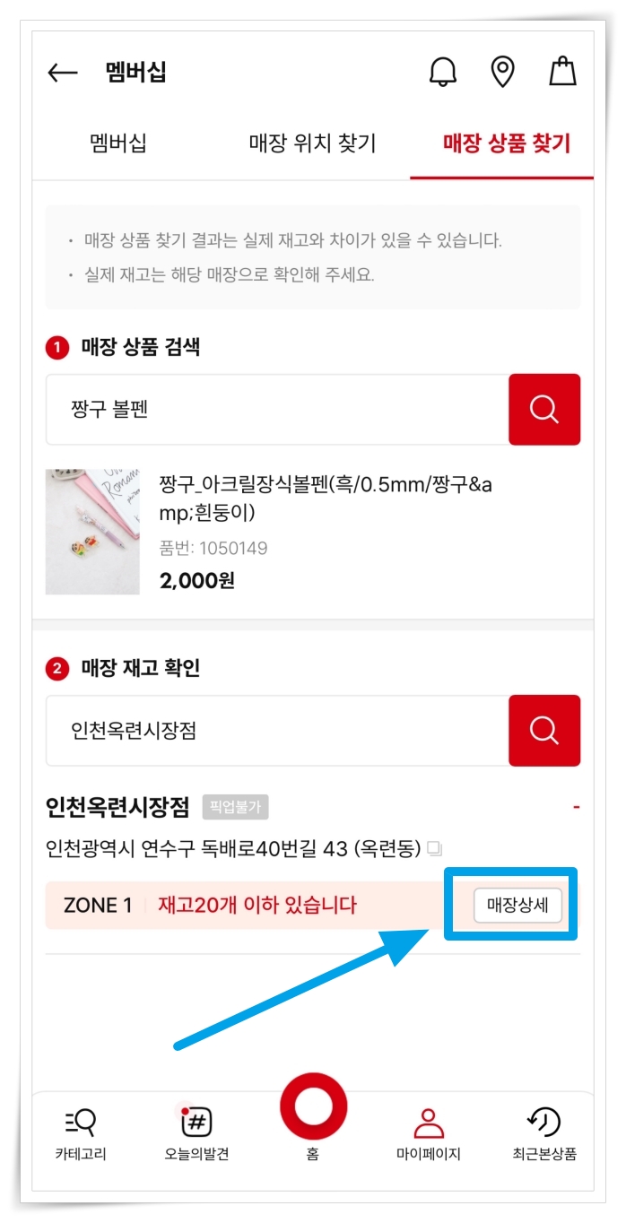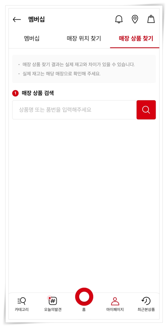 그리고 매장에 따라 재고가 부족한 경우가 종종 있는데요. 이럴 때는 재고 조회 기능을 활용하면 원하는 상품이 있는지 미리 확인하고 방문할 수 있어서 편리합니다. 조회 방법은 앱에서 상품 찾기와 후 매장을 검색하면 해당 매장의 재고 유무를 확인할 수 있습니다. 다만 매장 상품 찾기 결과는 실제 재고와 차이가 있을 수 있습니다.